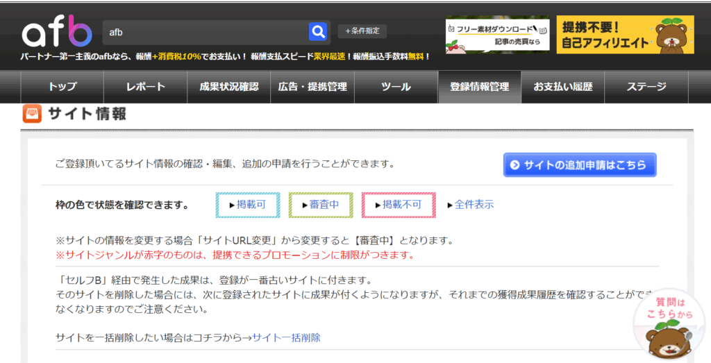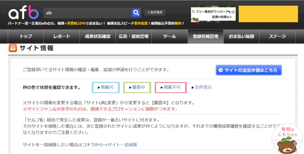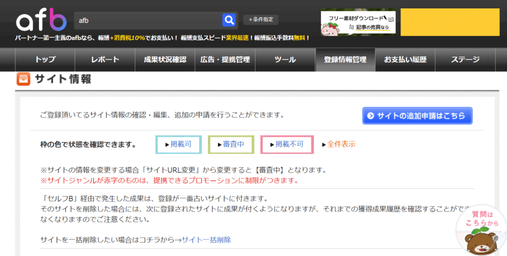 afbの会員登録が終わったら、次にやることは自分のブログ(サイト)をafbに登録することです。