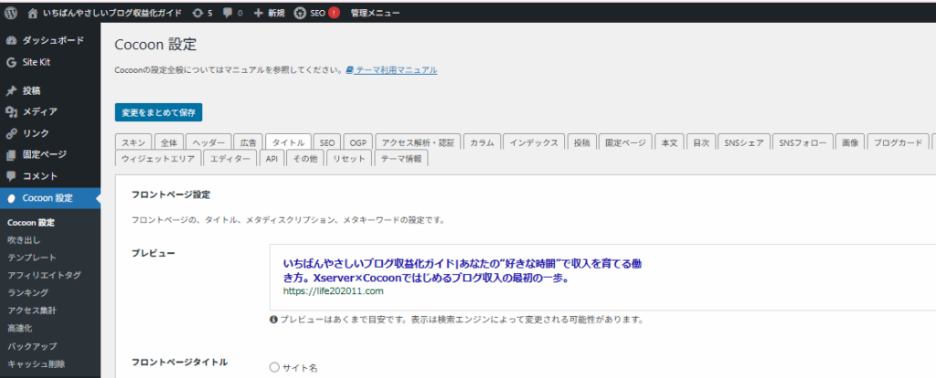 ここでサイト名や説明文を整えます👇