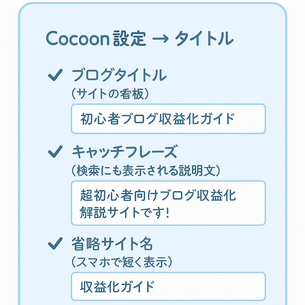 ブログタイトルと**キャッチフレーズ(サイト説明文)**です。