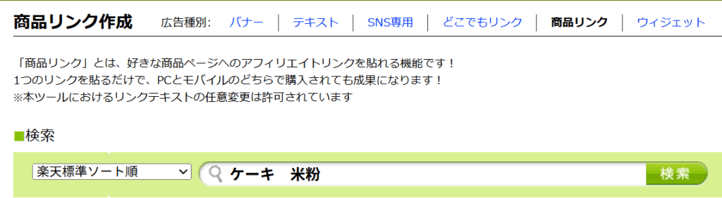 → 「広告リンク作成」 → 「楽天市場 商品リンク」