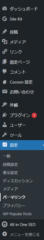 | 投稿名パーマリンク設定 | サイトを作ったら最初に! |